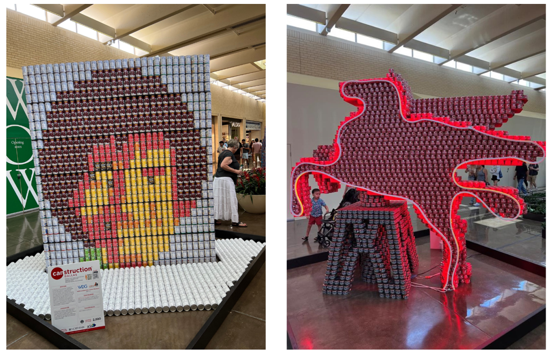 NorthPark Center visitors can vote on their favorite structure by donating to that team’s fundraising page at www.ntfb.org/canstruction. Every $5 donation casts a vote and helps the North Texas Food Bank provide access to 15 nutritious meals.